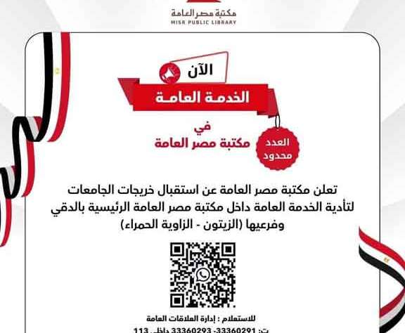 🌟 إعلان هام — الخدمة العامة في مكتبة مصر العامة 🌟