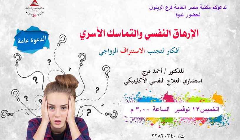 خدمات الدعم النفسي – مكتبة مصر العامة فرع الزيتون