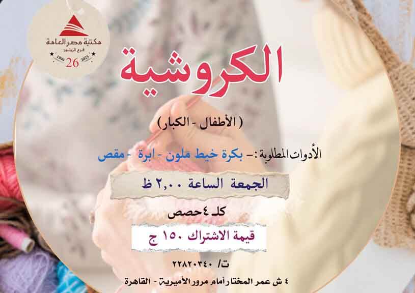 ومن هنا، تُطلق مكتبة مصر العامة – فرع الزيتون دورة الكروشية والهاند ميد التي تهدف إلى تمكين المرأة والشابات من تعلم فن صناعة الجمال بالأيدي، وتحويل الخيوط إلى تحف فنية ومشروعات صغيرة.
