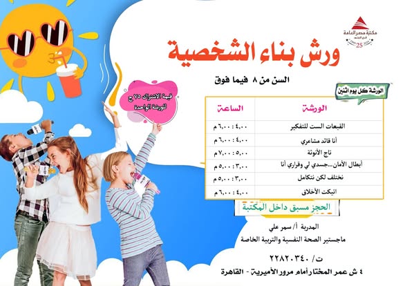 🚀 انطلاق إجازة نصف العام… والمرح يبدأ من هنا! 🎉 فعاليات وأنشطة مميزة للأطفال تجمع بين ورش 🎨 | كورسات 📚 | حركة ومتعة 🤸‍♂️ ضحك، تعلُّم، واكتشاف… بشكل مختلف في مكتبة مصر العامة – فرع الزيتون قررنا نحول إجازة نص السنة من: