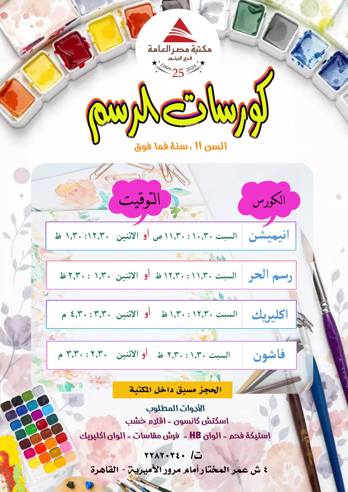 🚀 انطلاق إجازة نصف العام… والمرح يبدأ من هنا! 🎉 فعاليات وأنشطة مميزة للأطفال تجمع بين ورش 🎨 | كورسات 📚 | حركة ومتعة 🤸‍♂️ ضحك، تعلُّم، واكتشاف… بشكل مختلف في مكتبة مصر العامة – فرع الزيتون قررنا نحول إجازة نص السنة من: