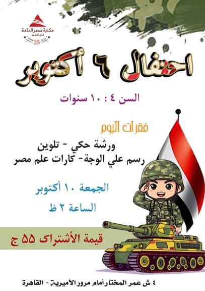 تحتفل مكتبة مصر العامة – فرع الزيتون بالذكرى الـ52 لانتصارات أكتوبر المجيدة بطريقة مختلفة هذا العام، حيث تُنظَّم فعالية فريدة موجهة للأطفال بعنوان